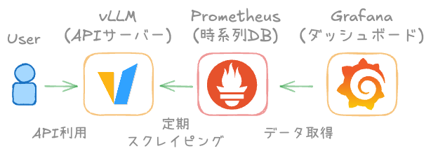 そこで今回はLLMのサービングエンジンであるvLLMとPrometheusとGrafanaを使った監視基盤の構築をご紹介します。