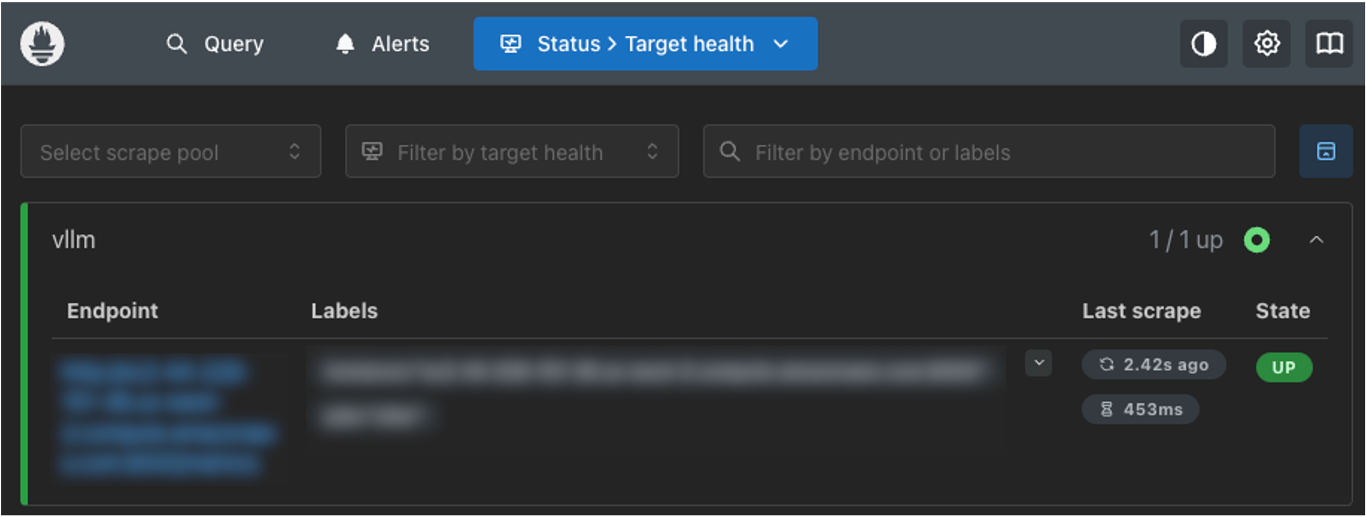 まずは、vLLMとPrometheusが接続できているか確認します。