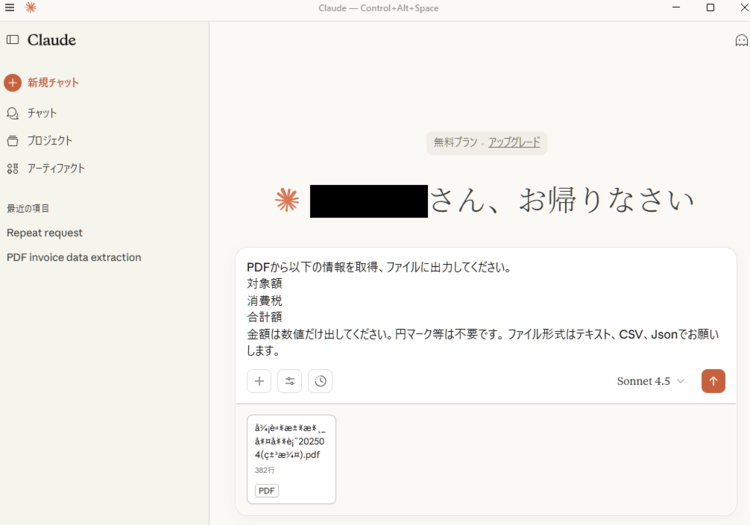 合計額は請求書内に記載がありませんが、Claudeが指示内容を判断して作成してくれます。