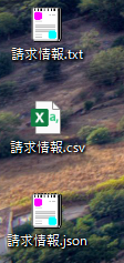 指示通り3つの形式(txt, csv, json)のファイルがローカルディレクトリに配置されました。