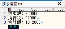 今回は請求書内にある対象額、消費税、その合計額を出力させます。