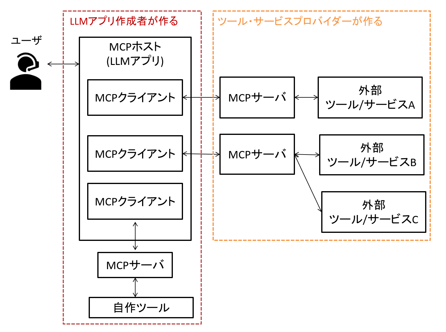 その為、MCPクライアントとMCPサーバのセットの単位はサービス単位と考えるとわかりやすいかと思います。