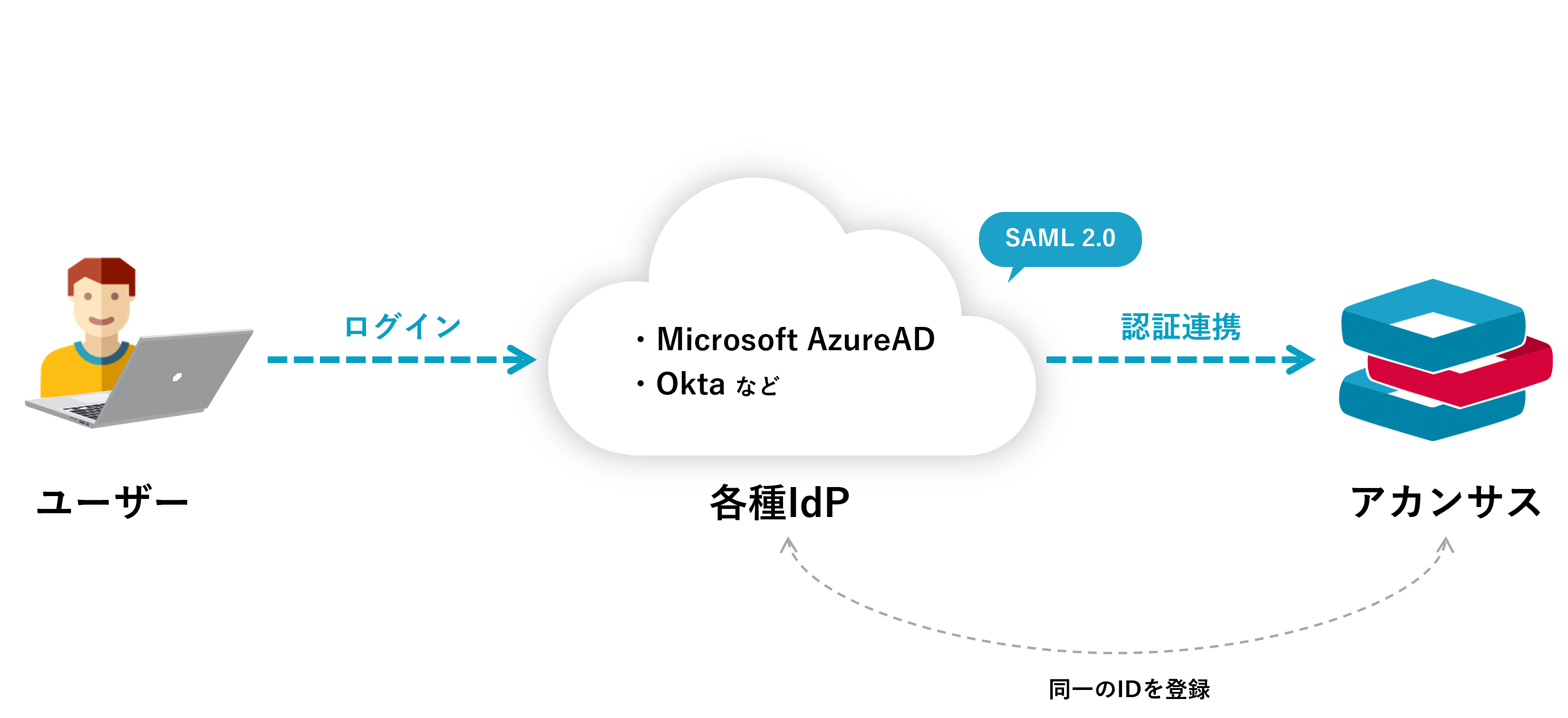 今回のリリースにより、お客様がご利用されているIDプロバイダ(IdP)を経由したシングルサインオンにて、アカンサスへのアクセスが可能になります。