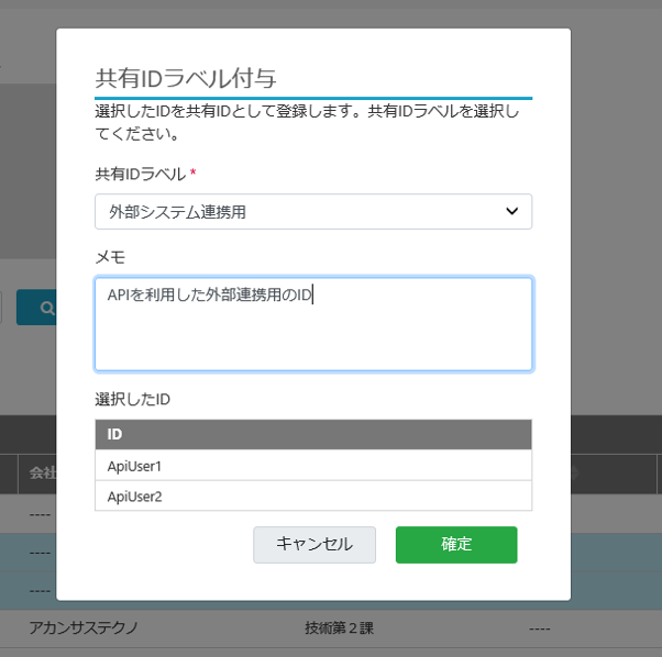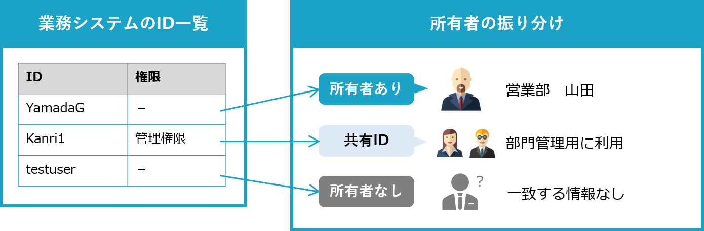 「所有者なしID」に対して「共有IDラベル」を付与することで管理状態を共有IDに変更することができます。