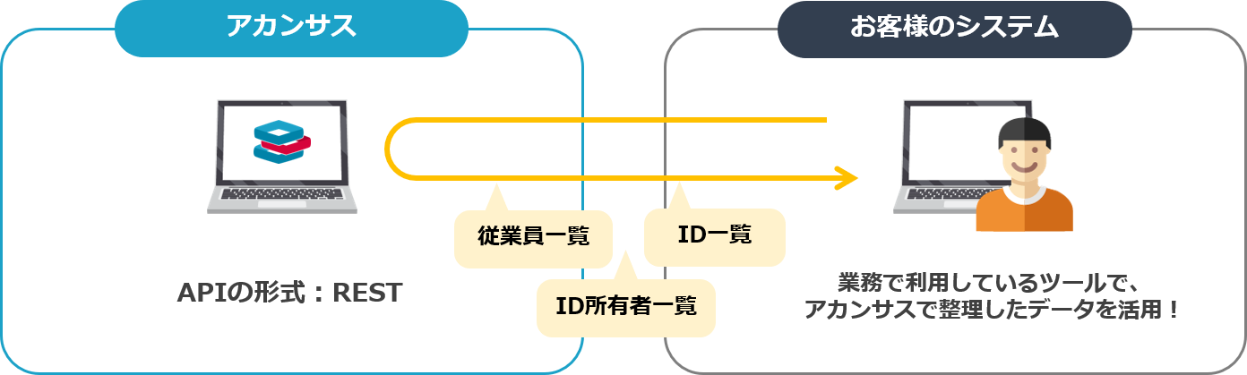 この度、アカンサスで整理したデータを他ツールで活用できるようREST形式のAPIをご用意いたしました。