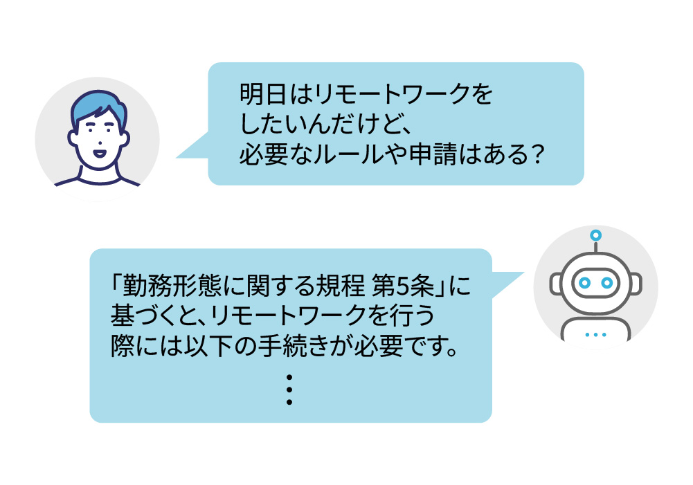 エージェントが社内文書の内容をもとに、社員の質問や依頼に回答