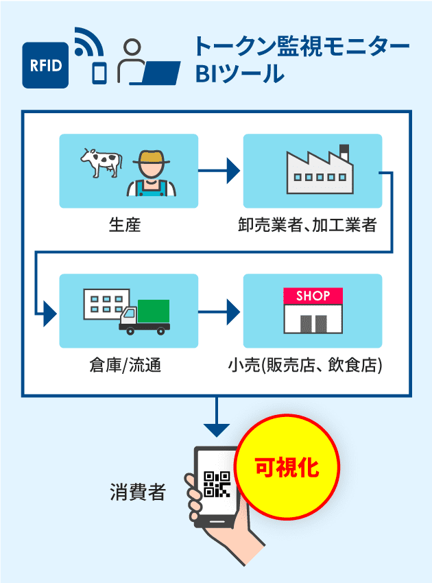 生産から卸売業者、加工業者、倉庫/流通まで追うことができるようになり、商品の安心感、品質の保証につながります。