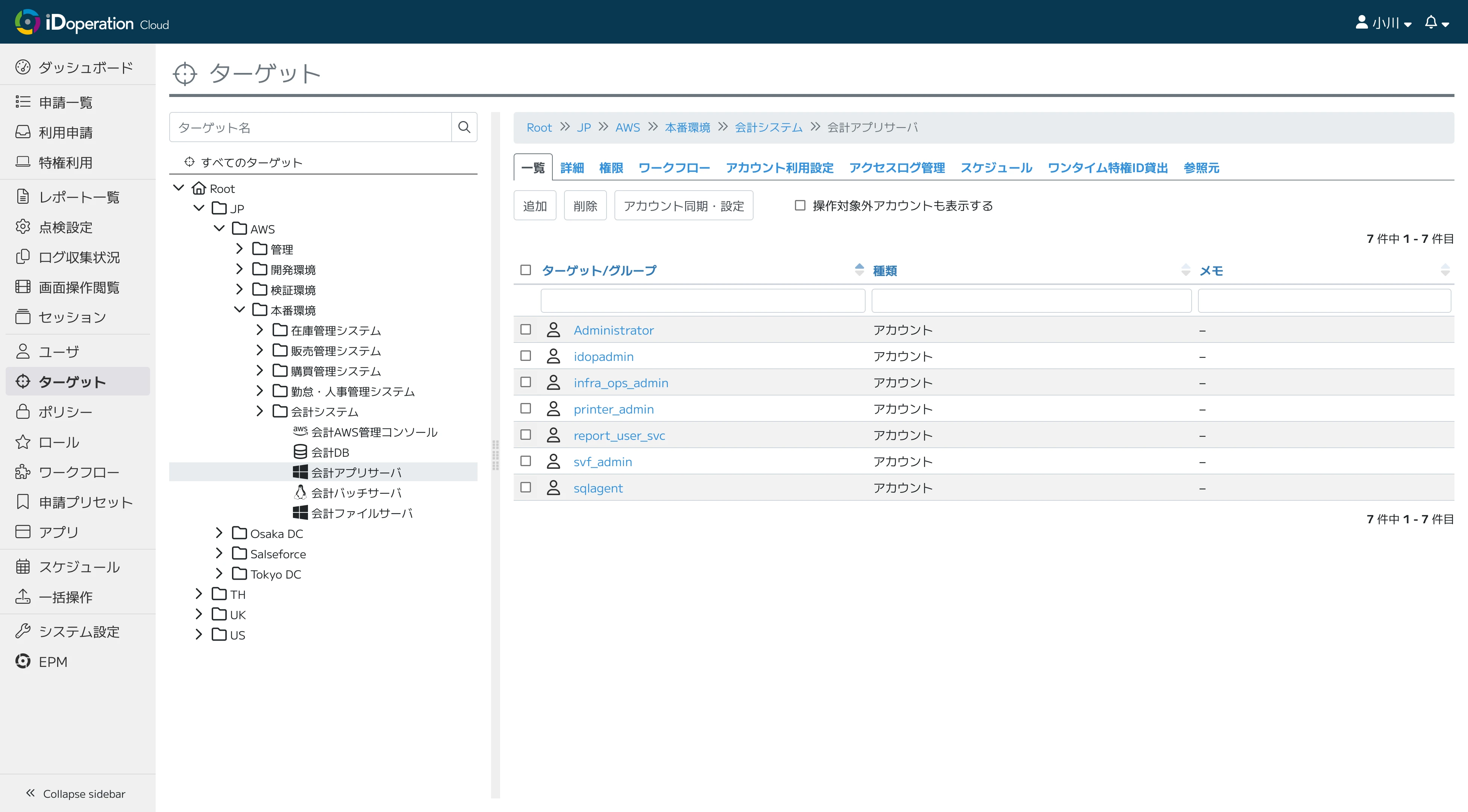 すべてのターゲットの特権IDを一元管理