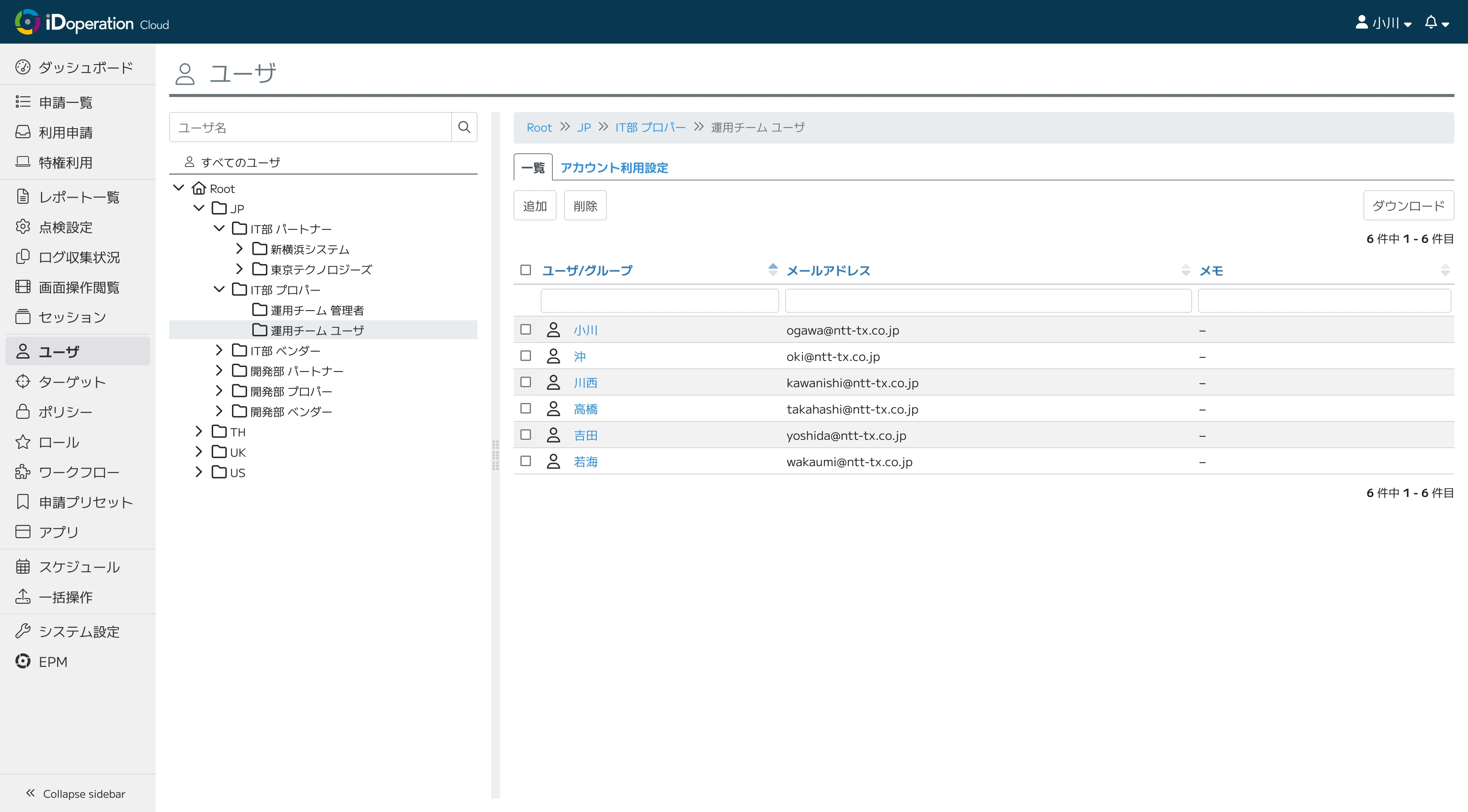 特権ユーザや、申請者・承認者・監査者・管理者などのユーザ情報を一元的な管理を実現します。
