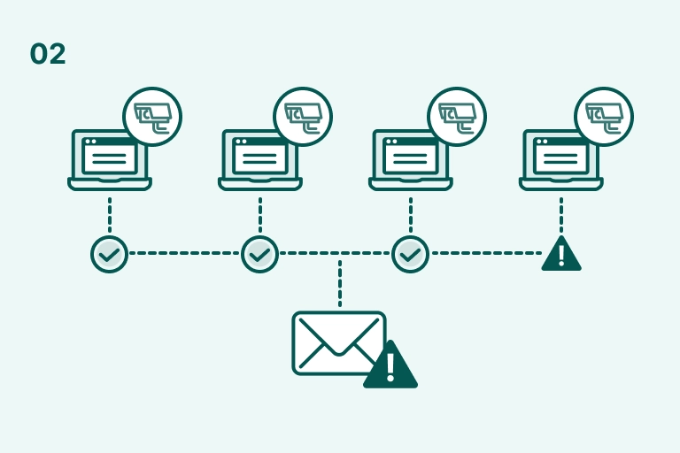 USBデバイスの挿入など、検知したい操作を事前に設定すれば、操作が発生した際に同時にメール通知します。通知メールには動画URLが含まれているため、操作内容を簡単に確認できます。