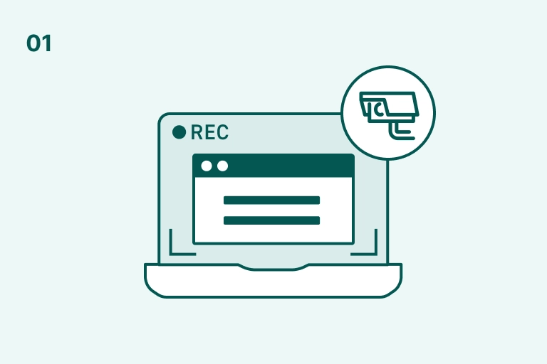 PCやサーバ上のユーザ操作を漏れなく動画で記録。テキストログだけでは追跡困難な操作も視覚的に確認でき、不正行為を抑止します。
