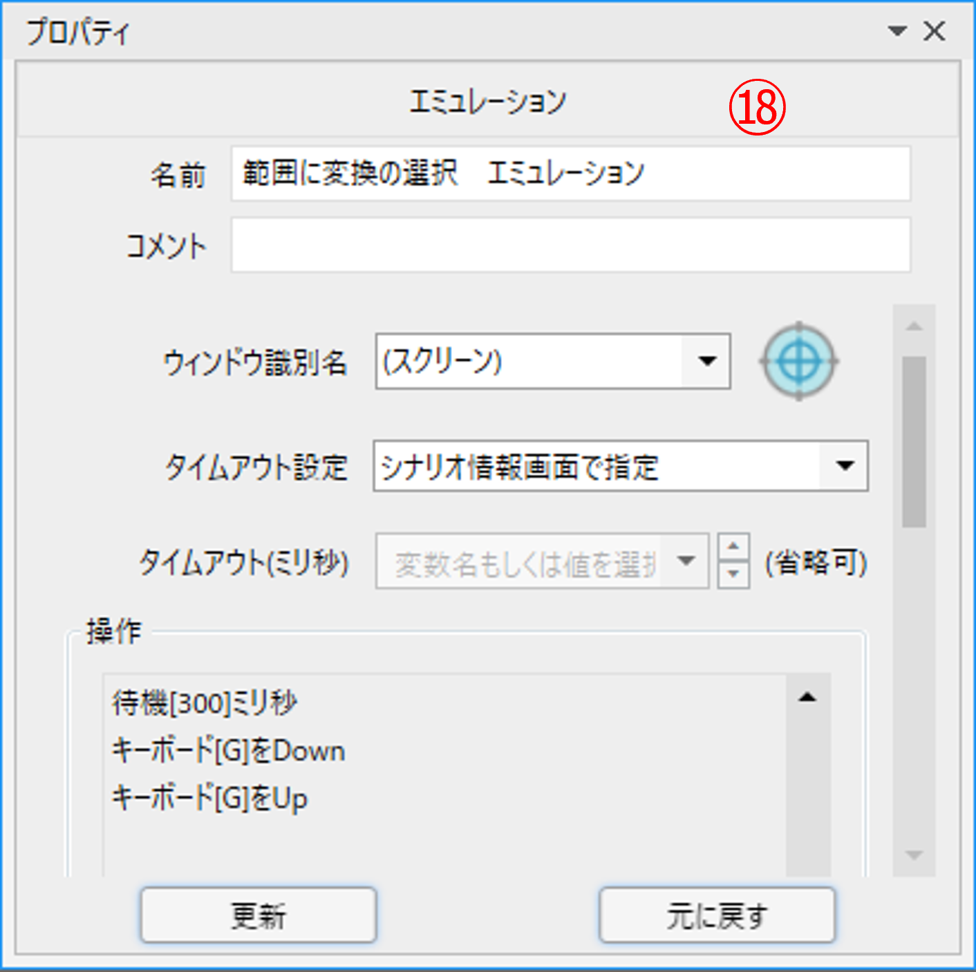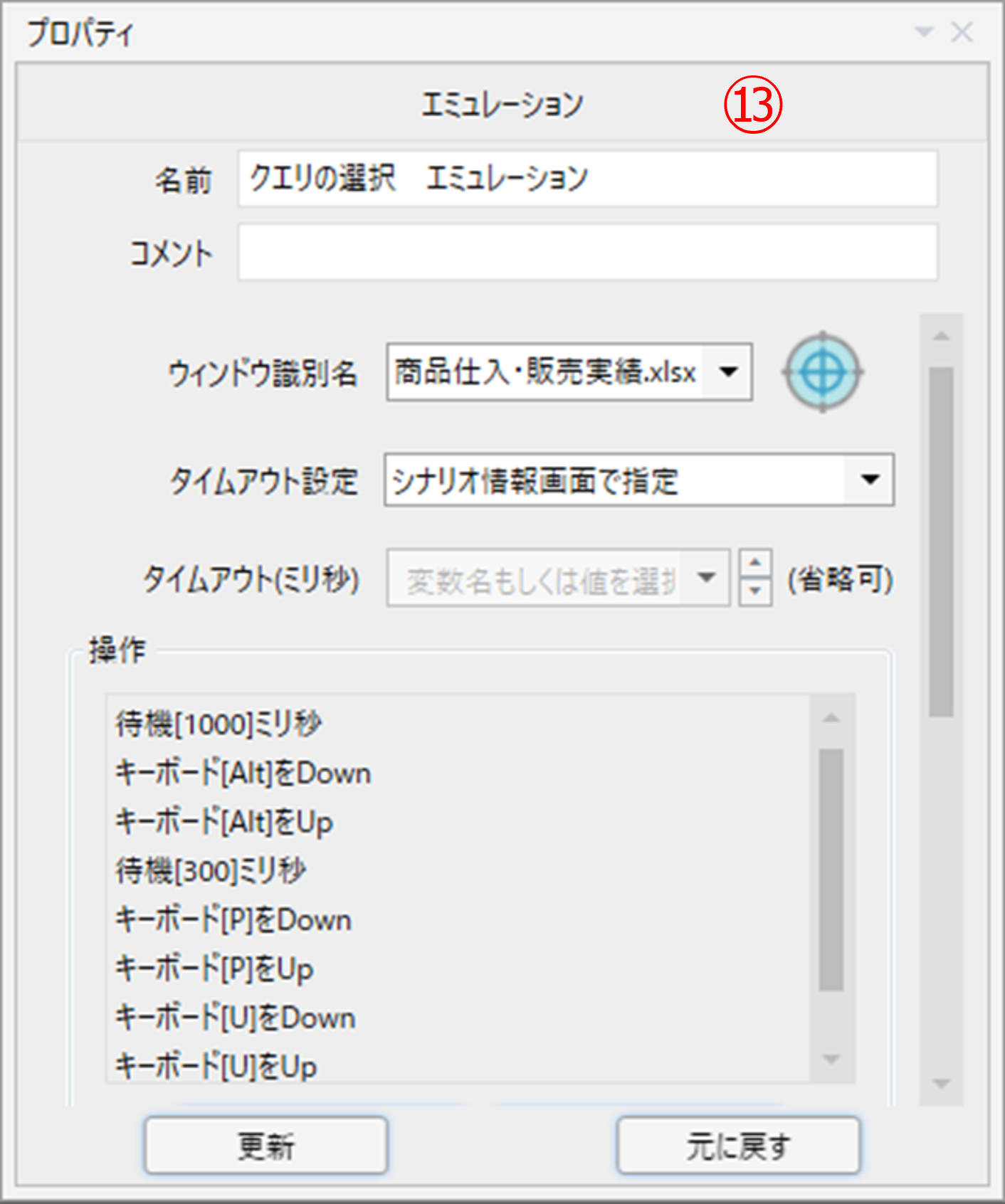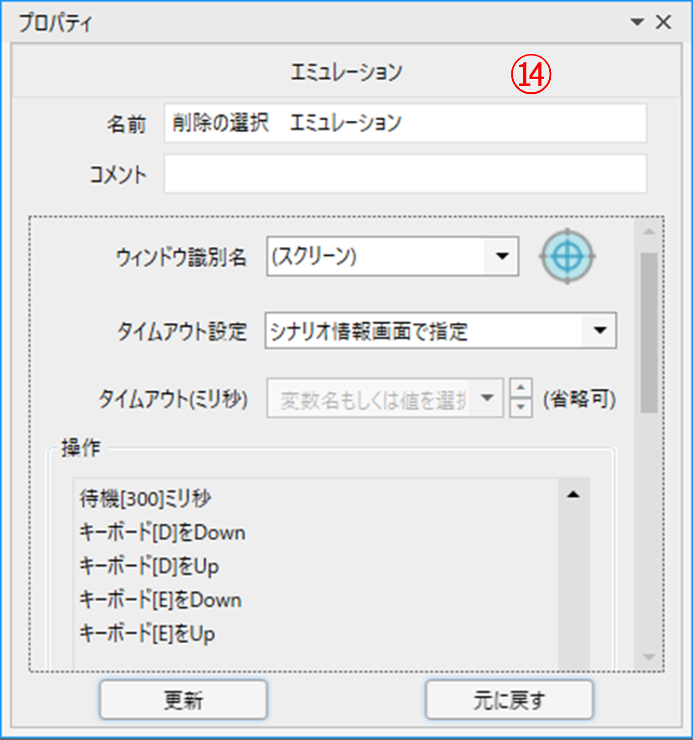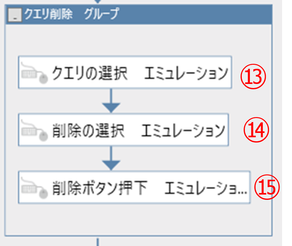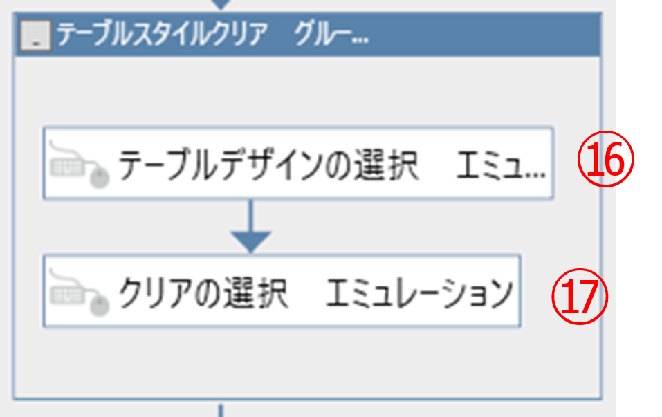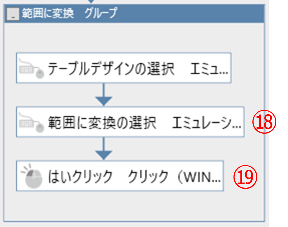 2つのエミュレーションと「はい」ボタンのクリックは「クリック(WIN32)」を使用して実現しています。