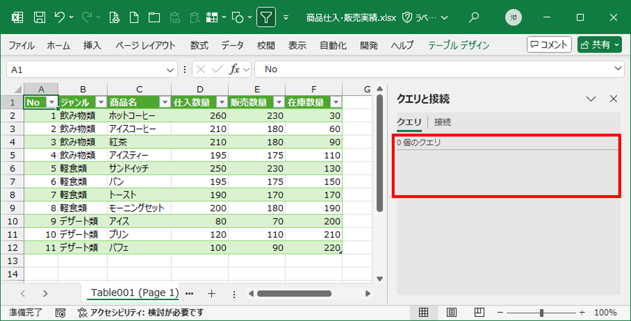ただし、この状態ではまだテーブルの設定自体は解除されていません。テーブル設定を解除するためには、次に示す手順を実施する必要があります。