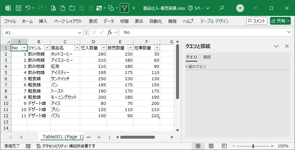 上記の操作でテーブル設定が解除されて通常のセル状態になりました。