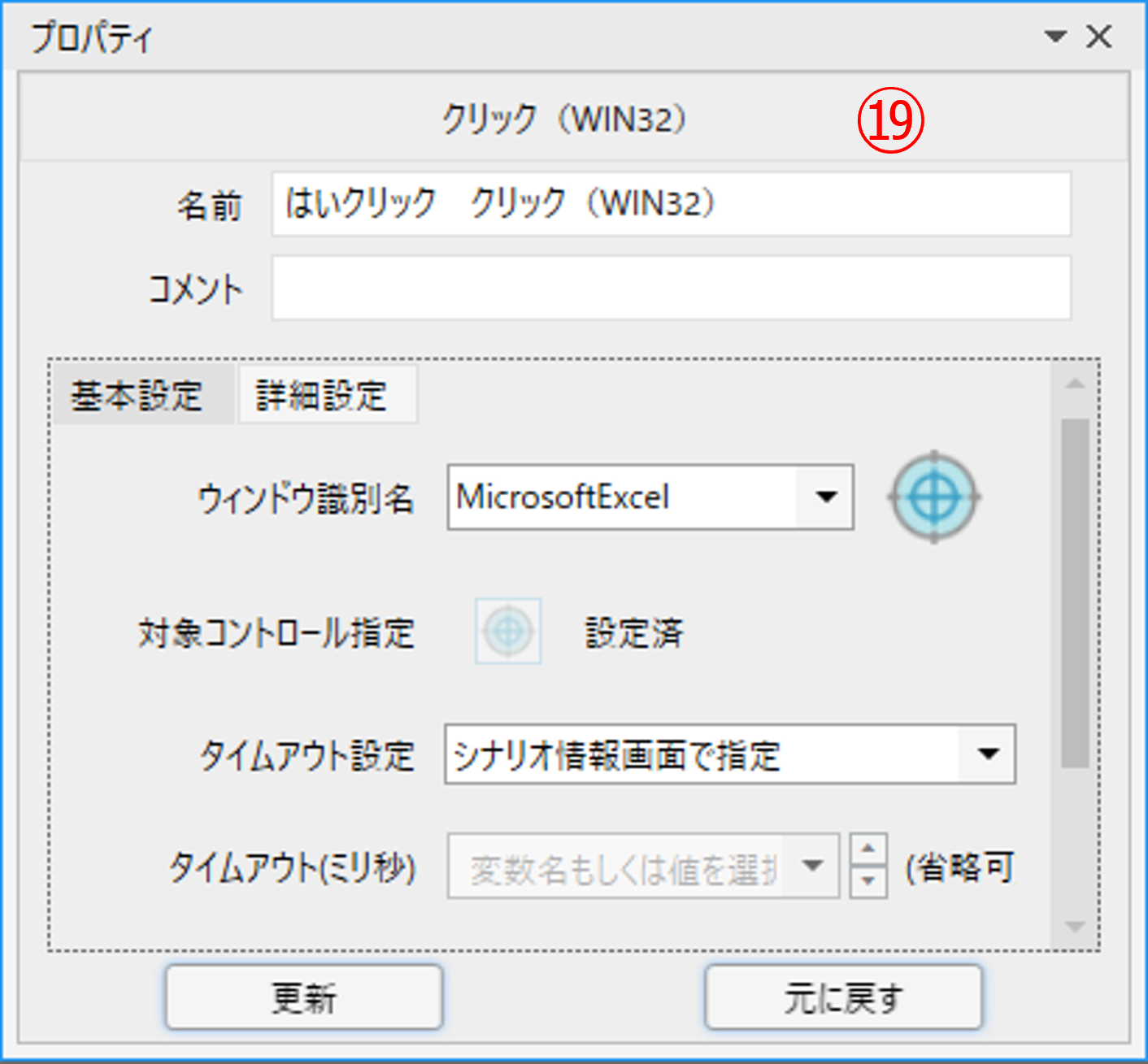 ウィンドウ識別名はダイアログ画面を指定しています。
