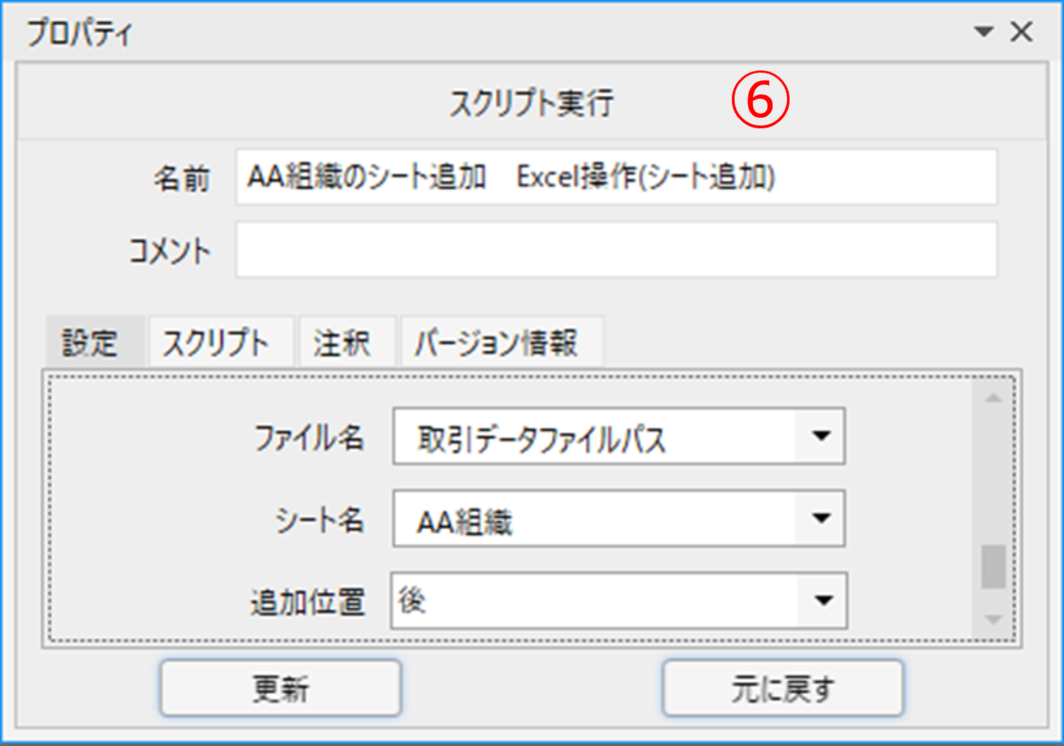 ⑥「Excel操作(シート追加)」でシートを追加します。