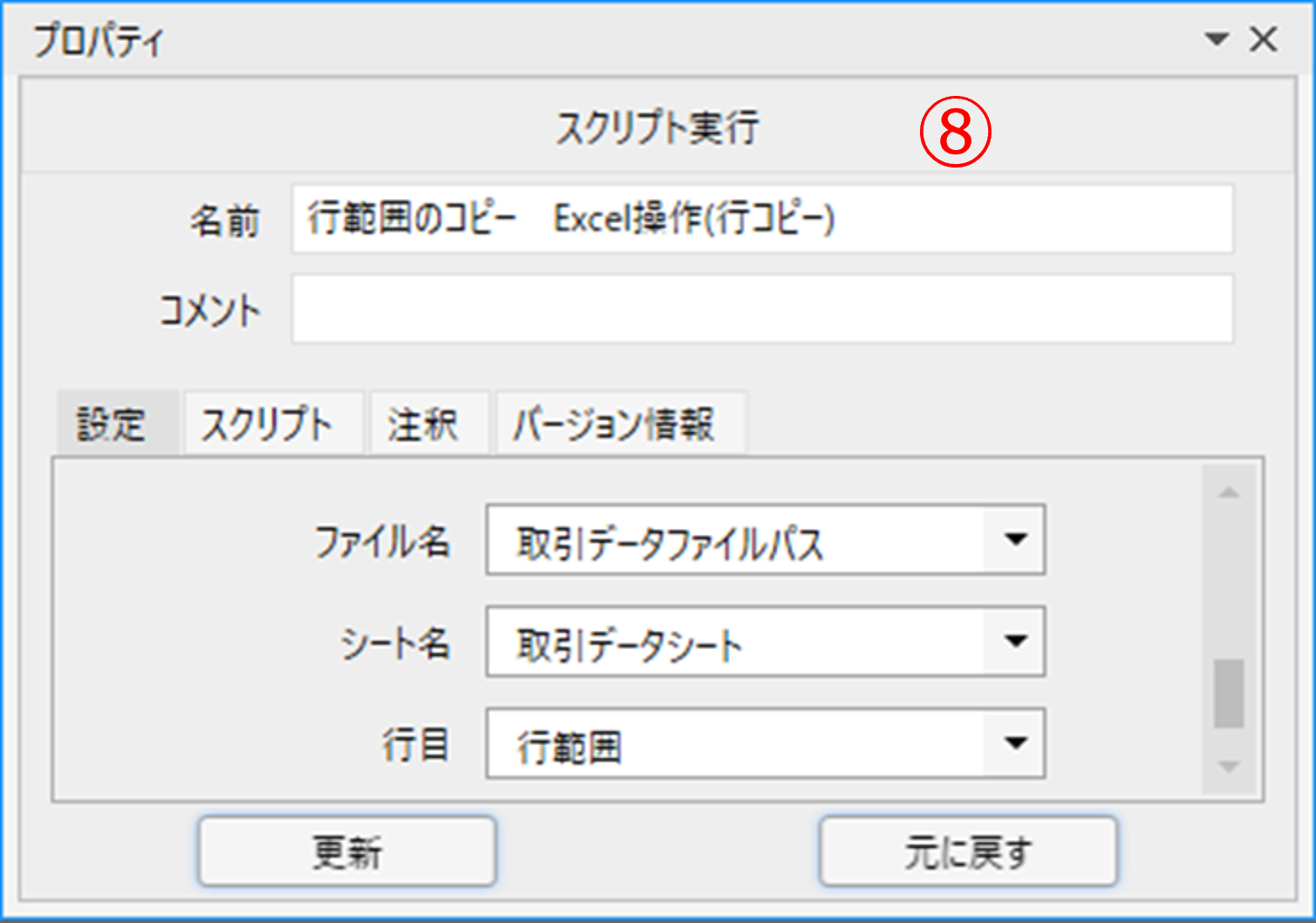⑧「Excel操作(行コピー)」です。