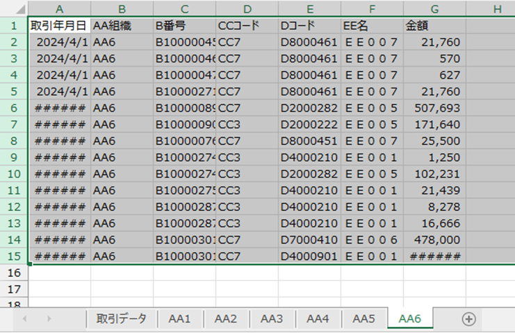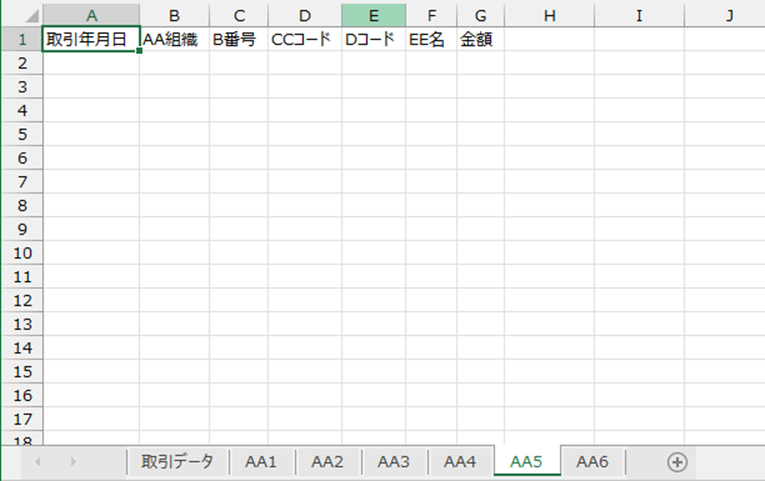 今回は「AA5」組織は取引データが1件もない状態でしたが、