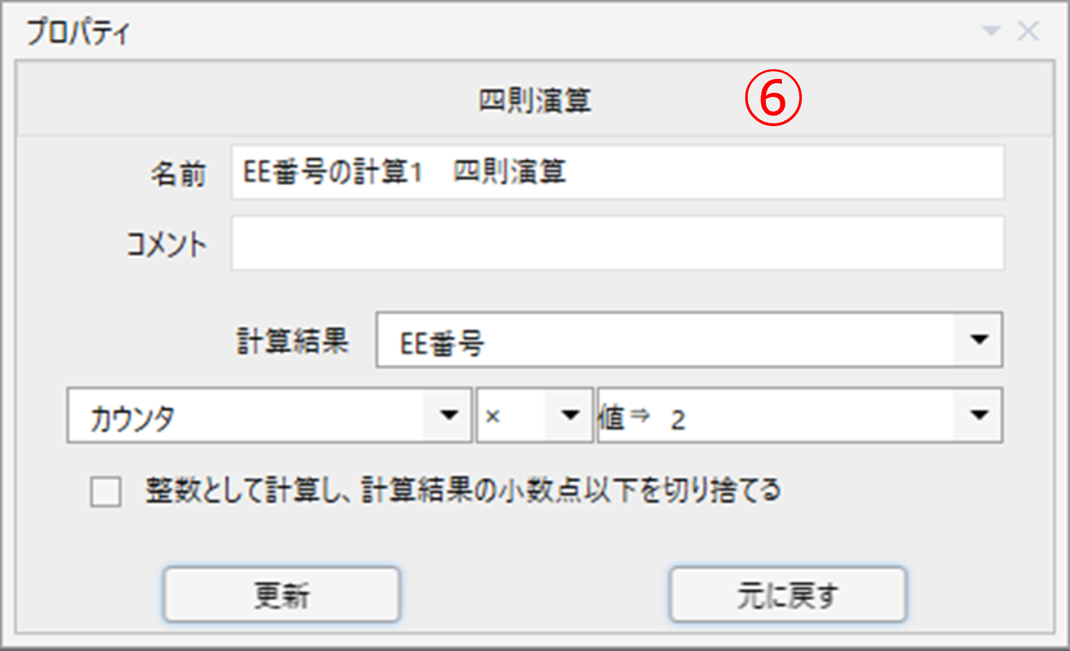 ⑥「四則演算」ノードを使用してEE番号を計算します。