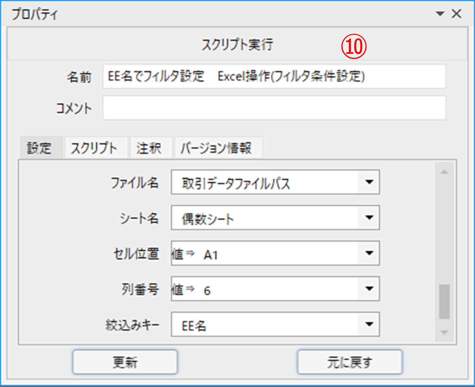 ⑩「Excel操作(フィルタ条件設定)」でフィルタします。
