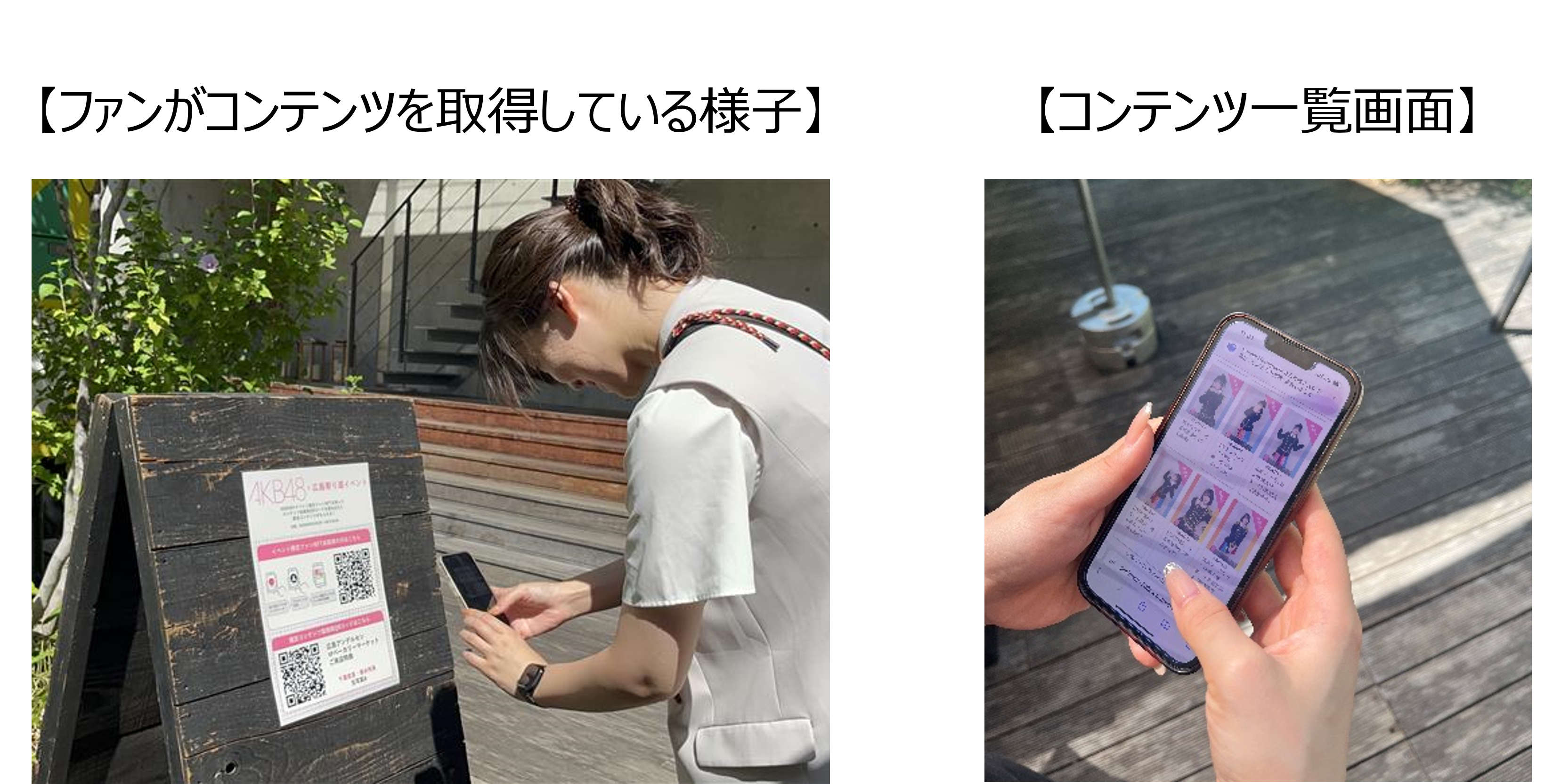 2025年9月15日(月・祝)に開催された「AKB48 20th Year Live Tour 2025 〜PARTYが始まるよ〜」広島公演に合わせて、「AKB48×広島寄り道イベント」としてAKB48のファンを対象に実施しました。 AKB48のファンは「ファンNFT²*¹」を事前に取得し、イベント期間中(2025年9月15日~17日)に広島の対象ショップを訪れて、コンテンツ取得用QRコードをスマートフォン等の端末で読み込むことで、限定デジタルコンテンツが獲得可能になります。