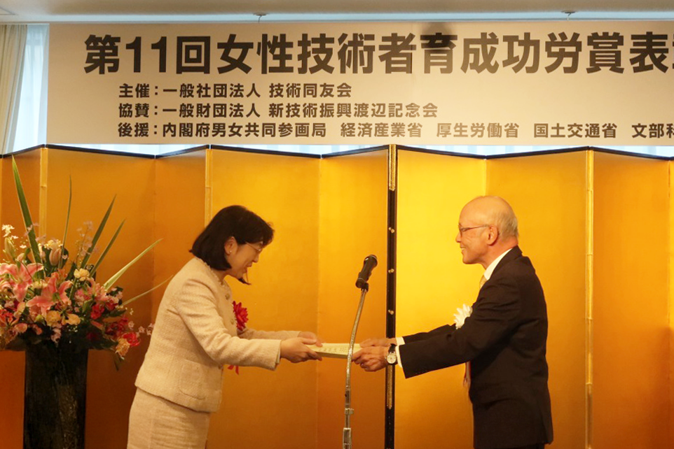 女性技術者育成功労賞は、一般社団法人技術同友会が女性技術者の活躍を推進・支援するために、女性技術者の育成に顕著な成果を上げた個人(男女を問わず)及び組織の方々を表彰しています。