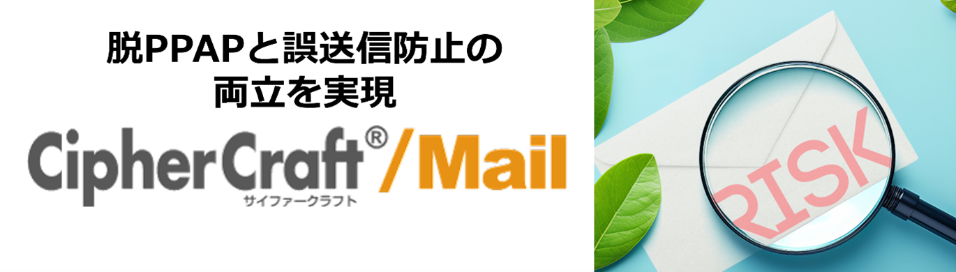 「CipherCraft®/Mail」は、2003年に販売を開始し、メール送信前の再確認やAI(機械学習)によるリスク検知などにより、情報漏えいを防ぐメール誤送信防止ソフトウェアです。(https://www.ciphercraft.jp/mail/)